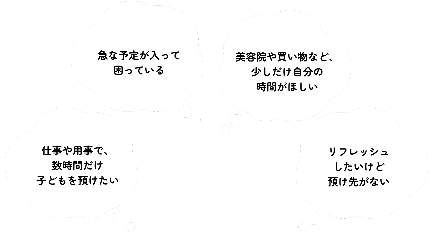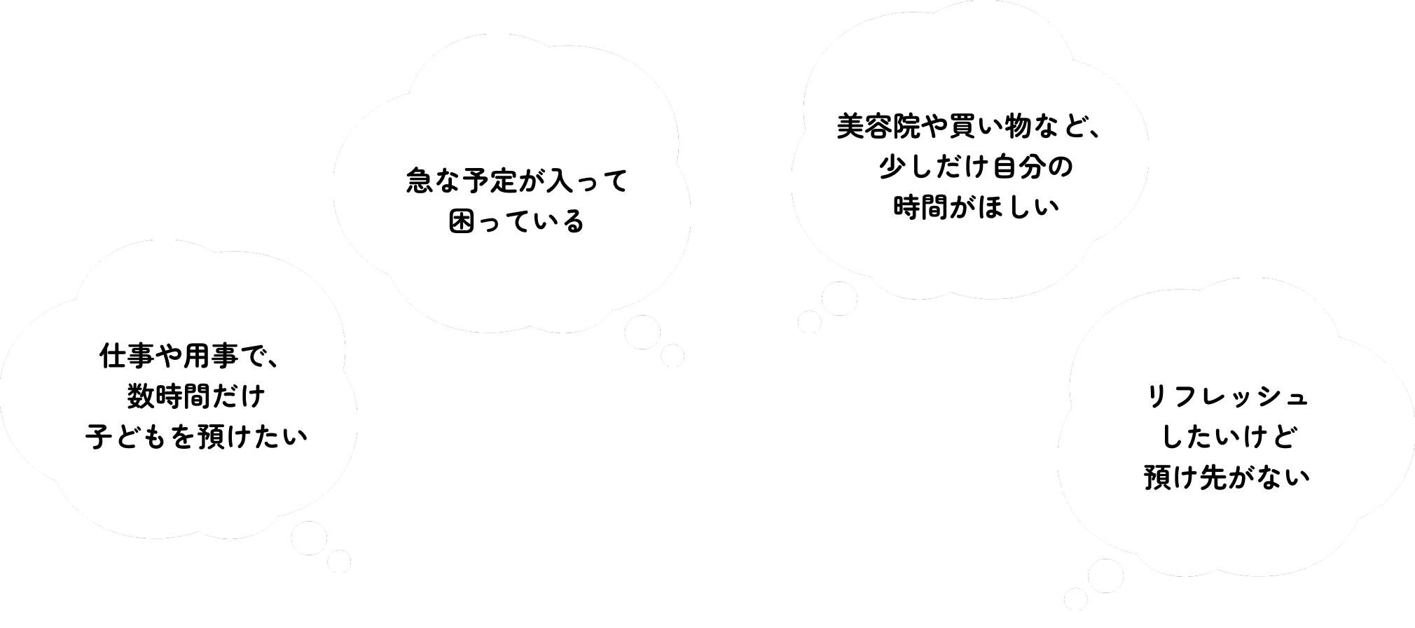 地域の子育て世帯の 「働きたい」「少し休みたい」を 支える場所です。